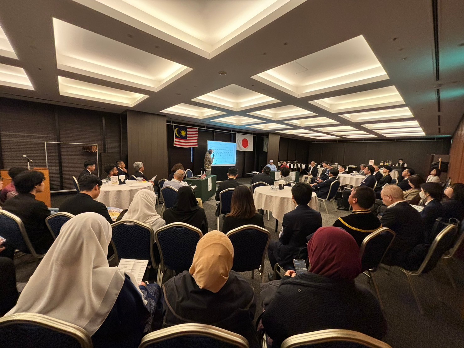 当日は、「福岡とマレーシアの間でさらなるビジネスを生むために福岡企業がやるべきこと」 という演題のもと、福岡商工会議所 産業・貿易振興部の田中 大輔様を講師に、また福岡の企業で活躍するマレーシア人を代表し、エムスタイルジャパン株式会社のサイード・ハフィジン・ジャミル様、弁護士法人 One Asiaのクラレンス・チュア様をゲストスピーカーにお迎えして、記念講演を行いました。講演の中では、マレーシア人のお二人に加え、マレーシア投資開発庁 大阪事務所からお越しの、所長 グラム・ムザイリ・グラム・ムスタキム様からも、福岡とマレーシアの関係や、今後の可能性などについてご意見を賜るなど、大変興味深いお話をお伺いすることができました。